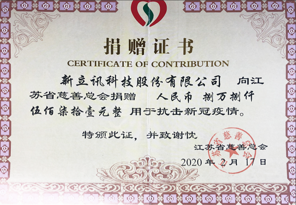 自新冠肺炎疫情發(fā)生以來(lái),新立訊公司高度關(guān)注疫情進(jìn)展,一方面從實(shí)從細(xì)抓好企業(yè)內(nèi)部的疫情防控工作,另一方面積極復(fù)工復(fù)產(chǎn)支持和配合政府做好疫情防控。與此同時(shí),新立訊不忘感恩社會(huì),通過(guò)江蘇省慈善總會(huì)給疫情重災(zāi)區(qū)湖北捐款5萬(wàn)元,并積極動(dòng)員公司全體員工進(jìn)行募捐,籌得全體員工、分支機(jī)構(gòu)及家屬、愛(ài)心人士善款38571元,共計(jì)籌得善款88571元,所有善款通過(guò)江蘇省慈善總會(huì)轉(zhuǎn)給湖北疫情災(zāi)區(qū)。
