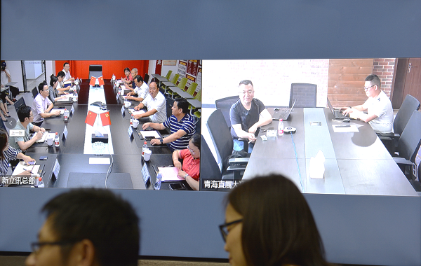 2020年7月28日,高淳區(qū)現(xiàn)代農(nóng)業(yè)產(chǎn)業(yè)園管委會(huì)常務(wù)副主任王嚴(yán)濤,全國(guó)人大代表、江蘇青松生態(tài)農(nóng)業(yè)科技發(fā)展有限公司董事長(zhǎng)兼總經(jīng)理“、螃蟹大王”邢青松及相關(guān)領(lǐng)導(dǎo)同志蒞臨新立訊總部考察調(diào)研,新立訊董事、副總經(jīng)理韓榮攜公司在家高管層及研發(fā)機(jī)構(gòu)負(fù)責(zé)人熱情接待,新立訊董事長(zhǎng)毛霖遠(yuǎn)程視頻會(huì)議接入。