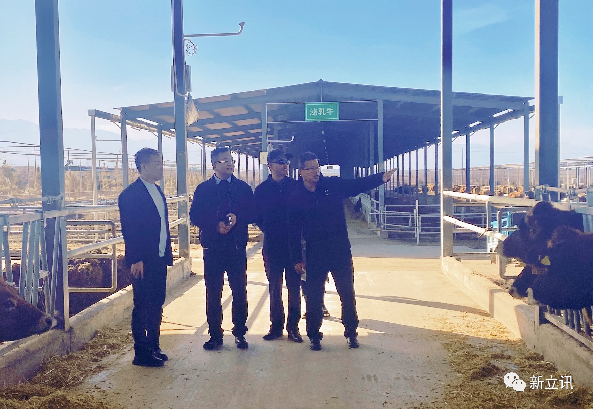 2023年2月24日至25日,新立訊及青海農(nóng)林牧商品交易中心董事長(zhǎng)毛霖,交易中心副總經(jīng)理?xiàng)顟c慶一行赴云鑫集團(tuán)甘肅省張掖市娟姍奶牛養(yǎng)殖基地進(jìn)行實(shí)地考察,青海云鑫集團(tuán)董事長(zhǎng)楊作云,甘肅云鑫實(shí)業(yè)有限公司總經(jīng)理范學(xué)強(qiáng)等陪同考察。