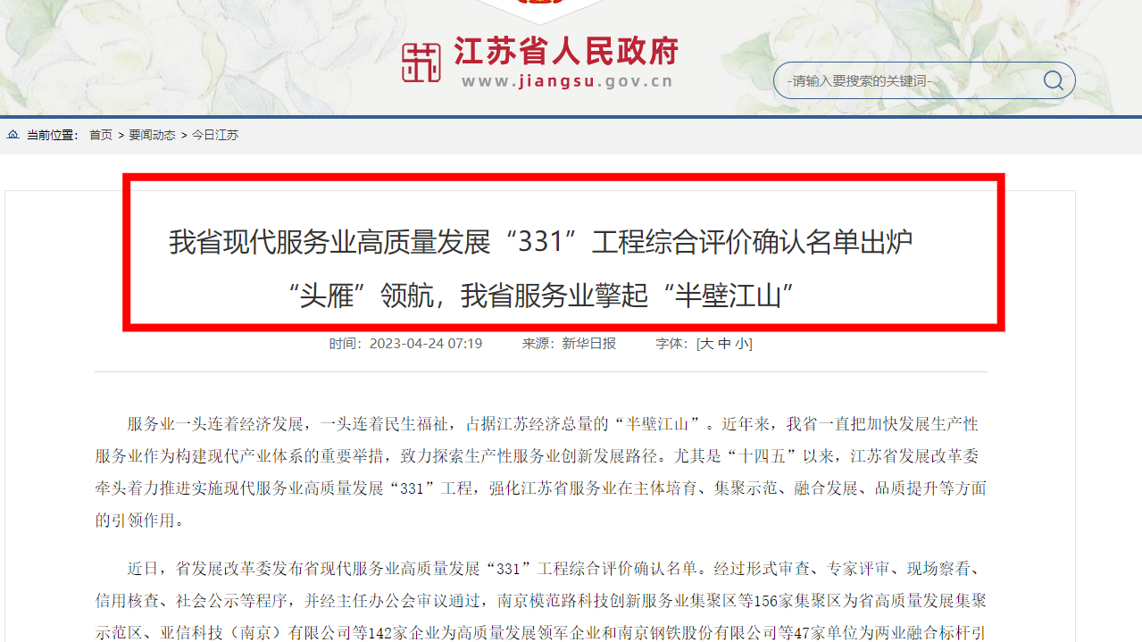 近日,新立訊科技股份有限公司上榜江蘇省現(xiàn)代服務(wù)業(yè)高質(zhì)量發(fā)展領(lǐng)軍企業(yè)“331”工程綜合評價確認名單中領(lǐng)軍企業(yè)。