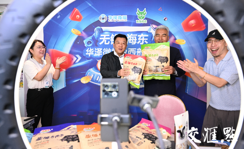 交易中心一樓大廳,分布著4個(gè)電商直播間,一端連著消費(fèi)者,一端連著供應(yīng)商。在一號(hào)直播間,無(wú)錫—海東“聯(lián)農(nóng)帶農(nóng)”農(nóng)副產(chǎn)品直播正在進(jìn)行。看到主播賣(mài)力吆喝、氣氛熱烈,省委書(shū)記信長(zhǎng)星提議:無(wú)錫市和海東市的書(shū)記,你們也帶帶貨!這一提議得到了兩省領(lǐng)導(dǎo)和代表團(tuán)成員的一致贊同。